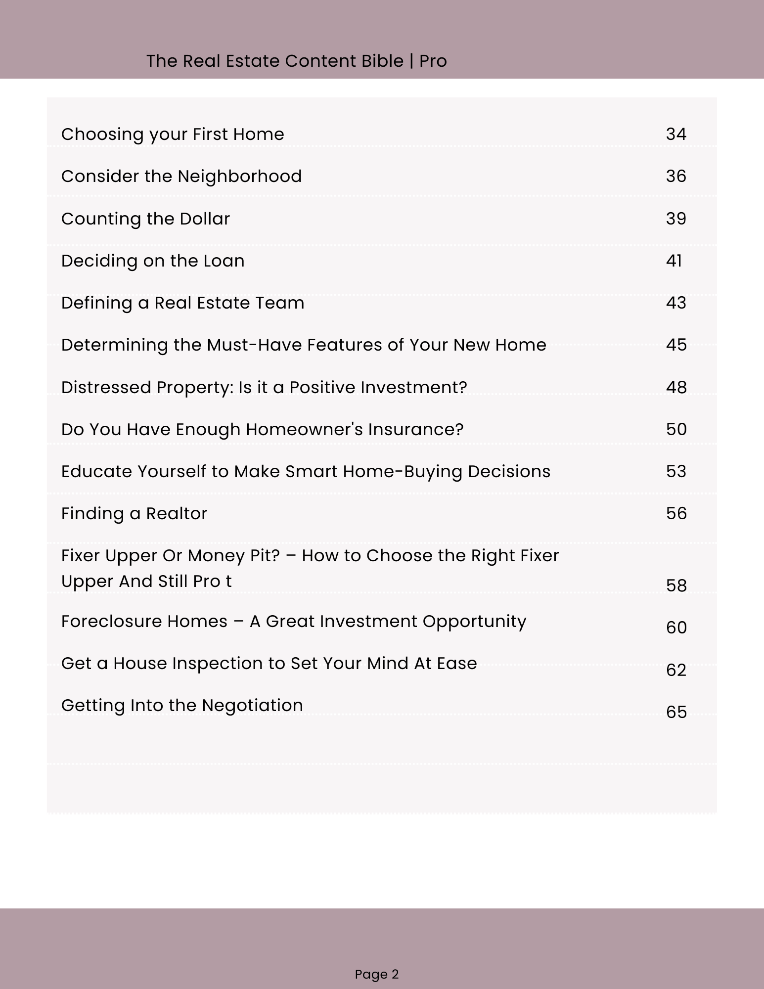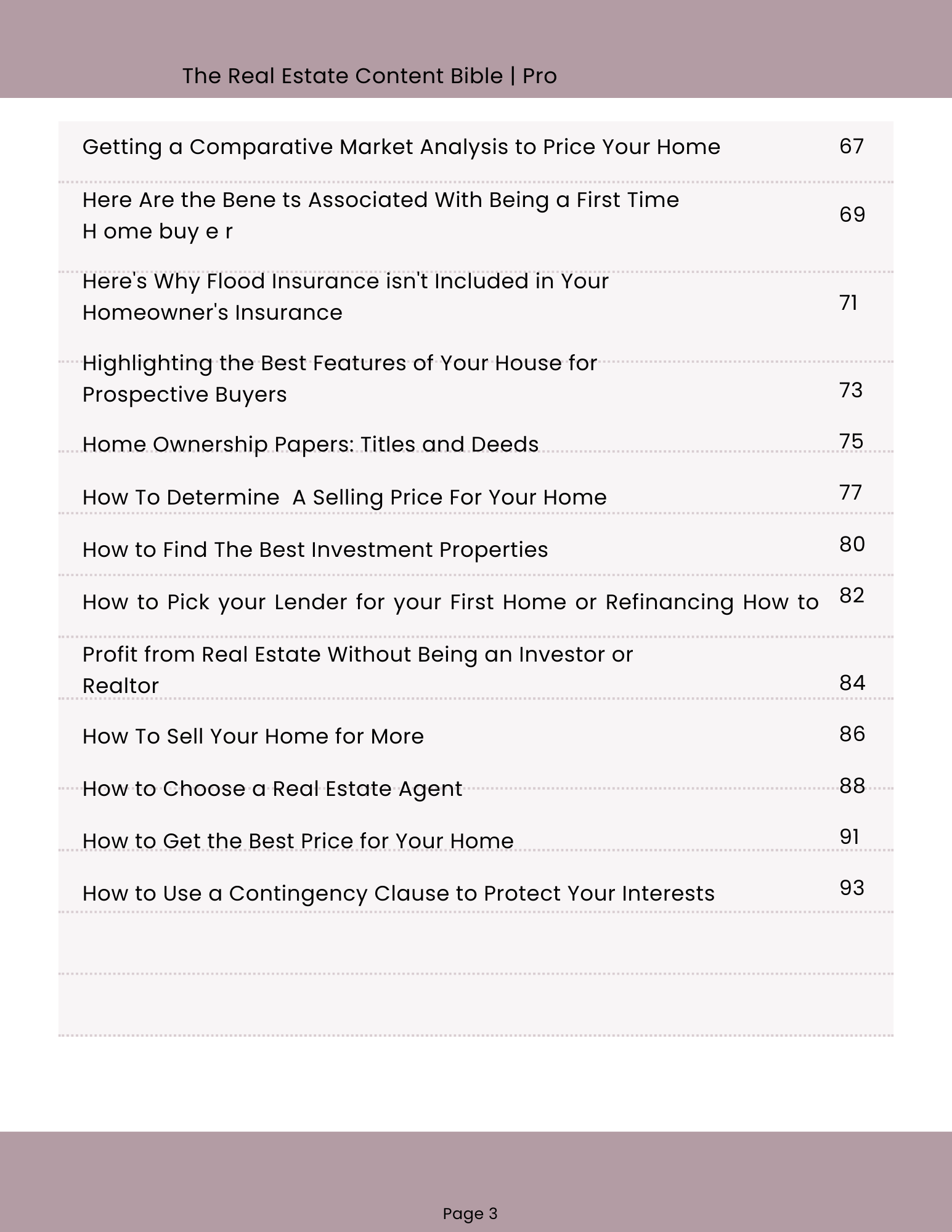 With in-depth knowledge on zoning laws, financing options, and tips from experienced real estate professionals, the Real Estate Content Bible is the go-to resource for getting the most out of your real estate investments.