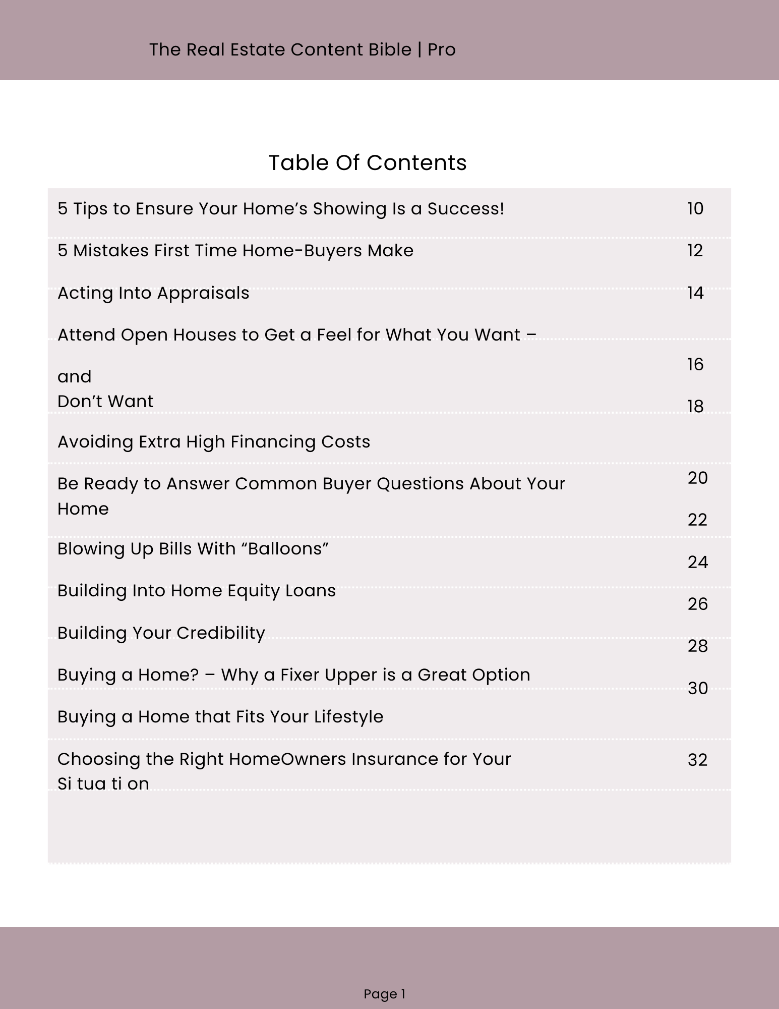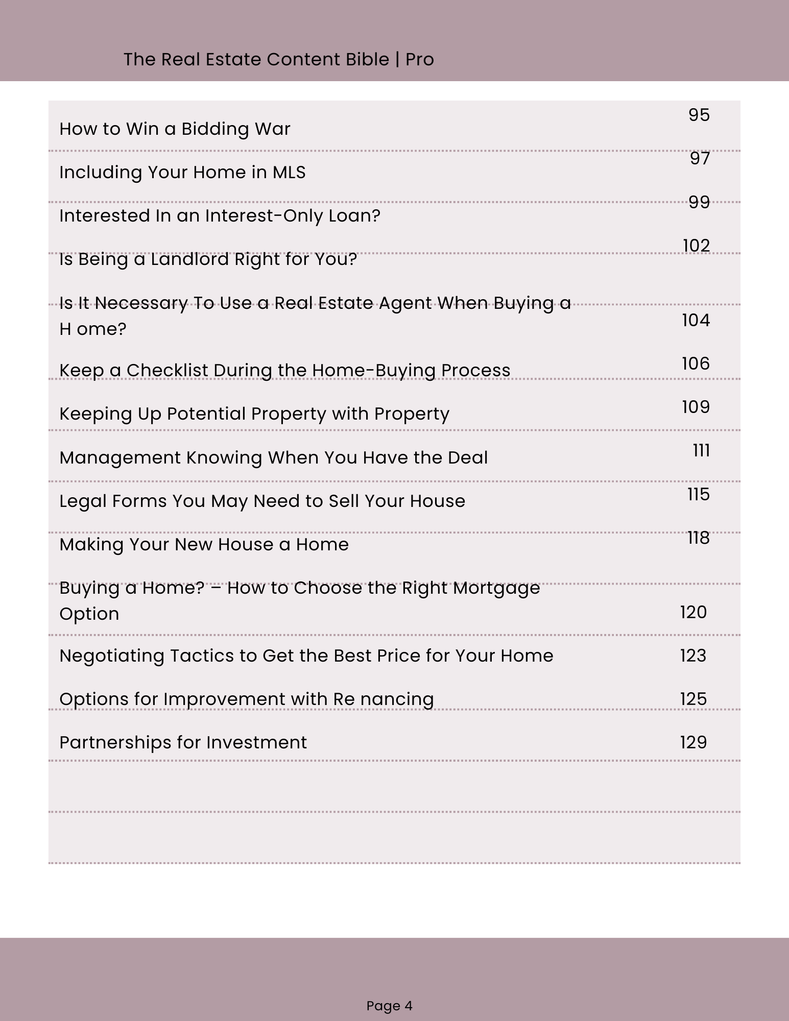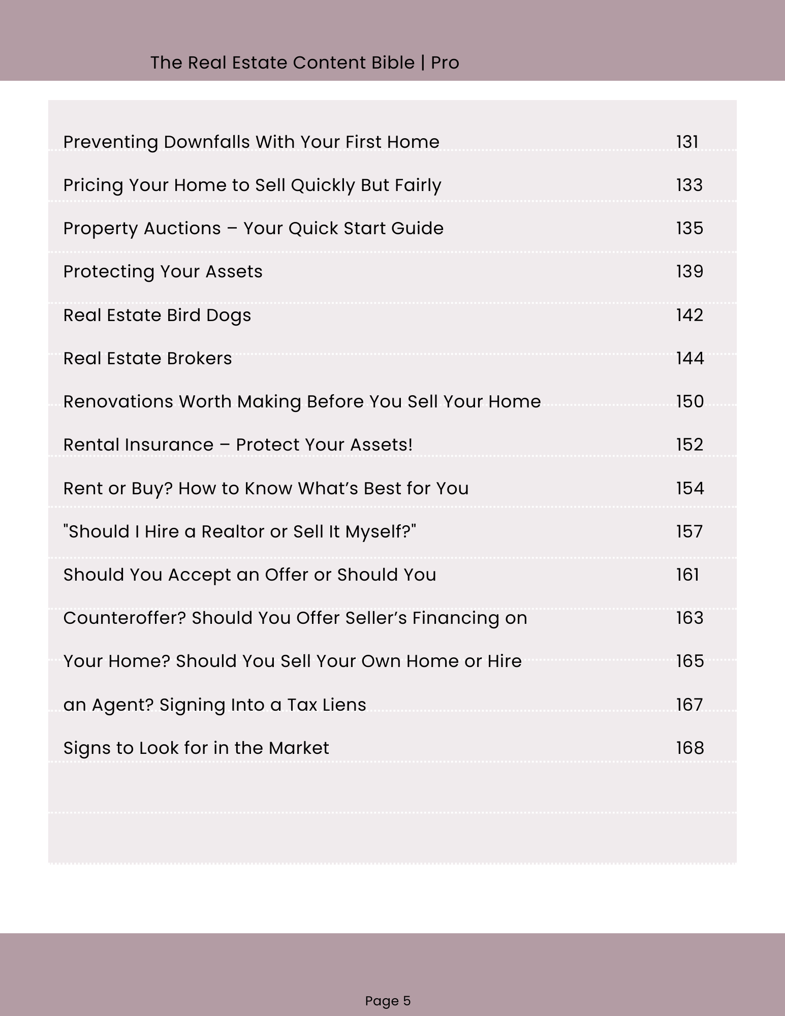 Are you overwhelmed trying to figure out the best way to get the most out of your real estate investments? The Real Estate Content Bible has all the answers you need! Our comprehensive resource provides buyers, sellers, real estate agents, brokers, wholesalers and other investors with the most up-to-date real estate information and strategies. You'll find everything from best practices to property management advice, and everything else in between.